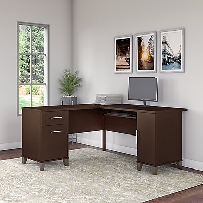 This whalen asherton l desk offers plenty of storage with three built in drawers.